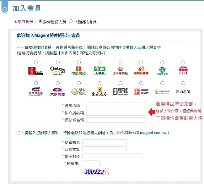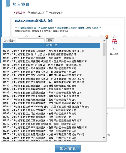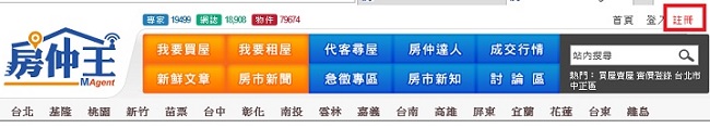 1.點選房仲王右上角"註冊",進入加入會員註冊畫面。