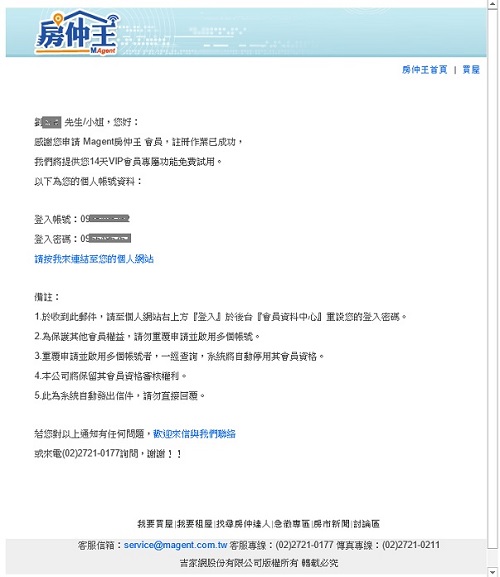4.申請成功後,本系統將會寄送申請成功通知函至您的信箱。