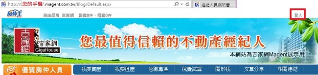 1.請於前台右上方之『登入』,輸入您的帳號及密碼即可。