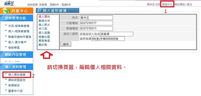 2.登入後,請直接點選『管理中心』->『管理中心』進行編輯。
